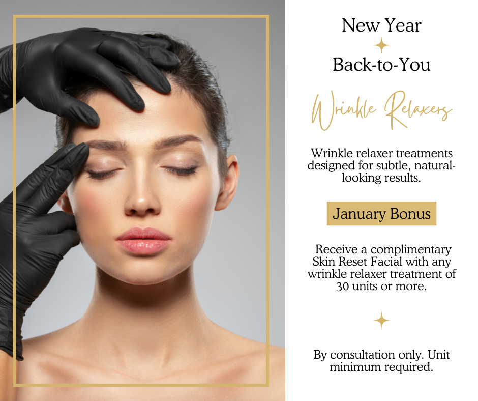 Receive a complimentary Skin Reset Facial with any wrinkle relaxer treatment of 30 units or more.